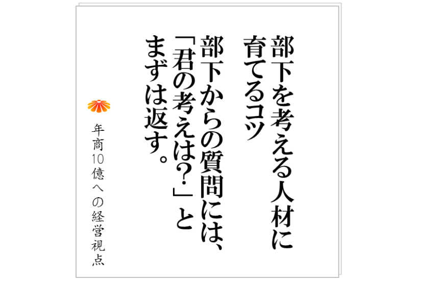 適当な「問い」を投げてください。社員に「問い」を背負わせる仕掛けを、経営計画のPDCAや人材育成の仕組みに織り込んでください。