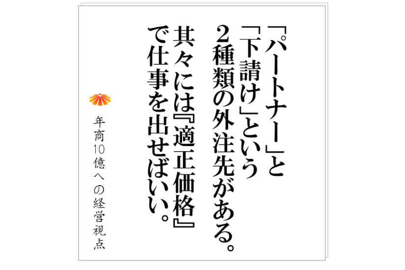 ただの「モノ」に対しては、多く支払う必要はありません、また、このご時世代わりを探すことは難しくありません、だから適正価格です。この先を下請けと呼びます。