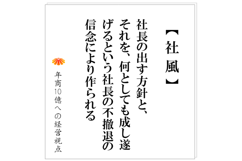 社長がそれについての方針を出す、そして、守らせる、そして、これが社風となります。