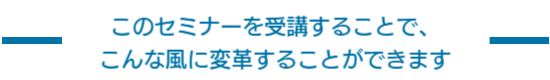 セミナーでは、仕組みでしっかり儲ける事業に変革するために必要な考え方と具体的なステップをお伝えします。上記のような具体的な課題の『原因』と『その解決の糸口』が必ず見つかります。