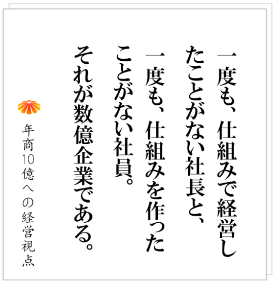 このコラムで言う「言葉で伝える」とは、社長が“口”で言うことではありません。あくまで、仕組みで伝わるようにすることです。